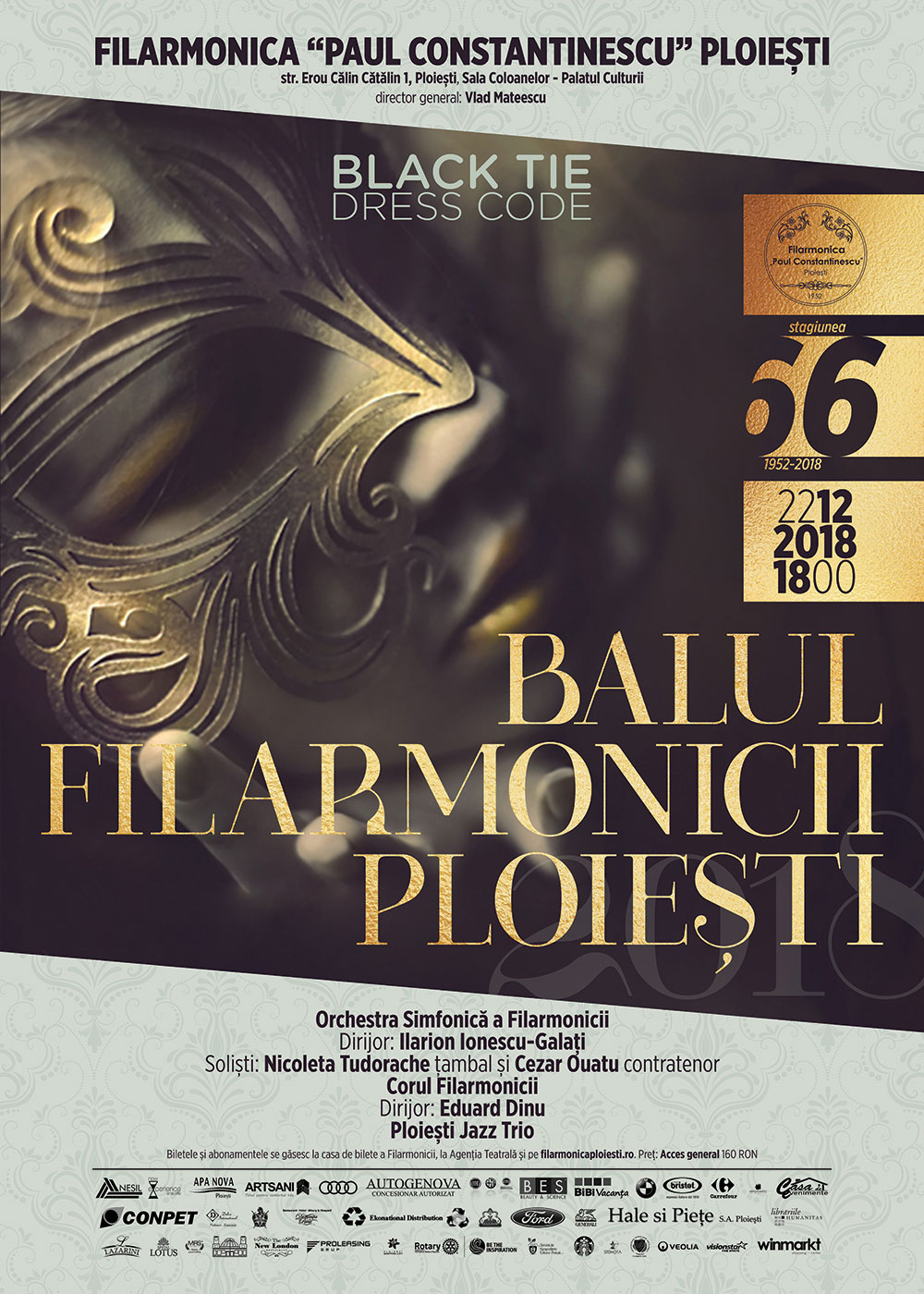 Filarmonica „Paul Constantinescu” vă invită la Bal! În Sala Coloanelor Palatului Culturii din Ploiești, pe 22 decembrie, de la ora 18.00, vă veți bucura din nou de eleganța și rafinamentul unui eveniment unic, aflat acum la cea de-a doua ediție. Pe scenă vor urca orchestra simfonică, la al cărei pupitru dirijoral se va afla maestrul Ilarion Ionescu Galați, și Ploiești Jazz Trio. Dress code: black tie!