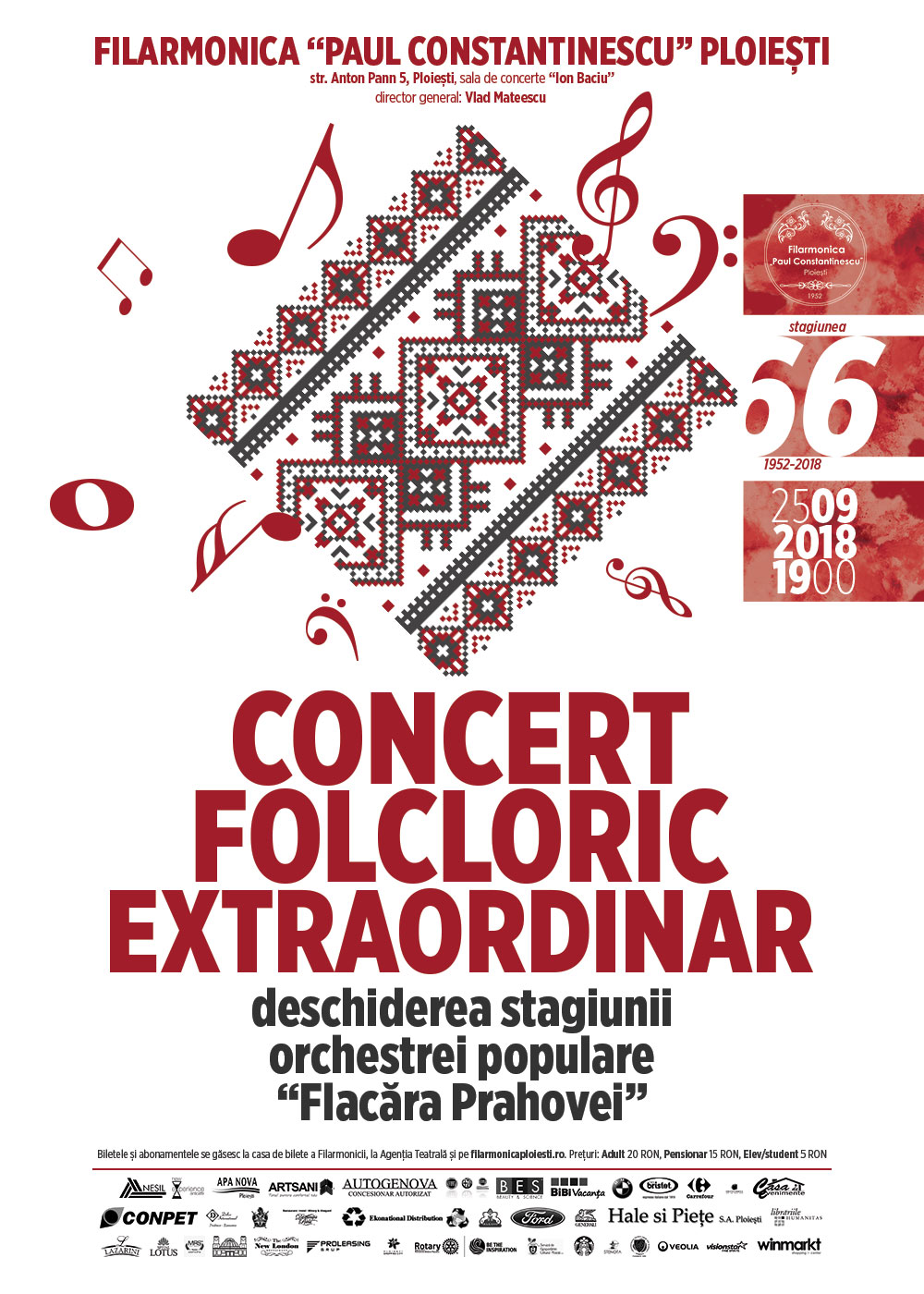 Concert Folcloric Extraordinar – Deschiderea stagiunii orchestrei populare „Flacăra Prahovei” – 25 septembrie 2018