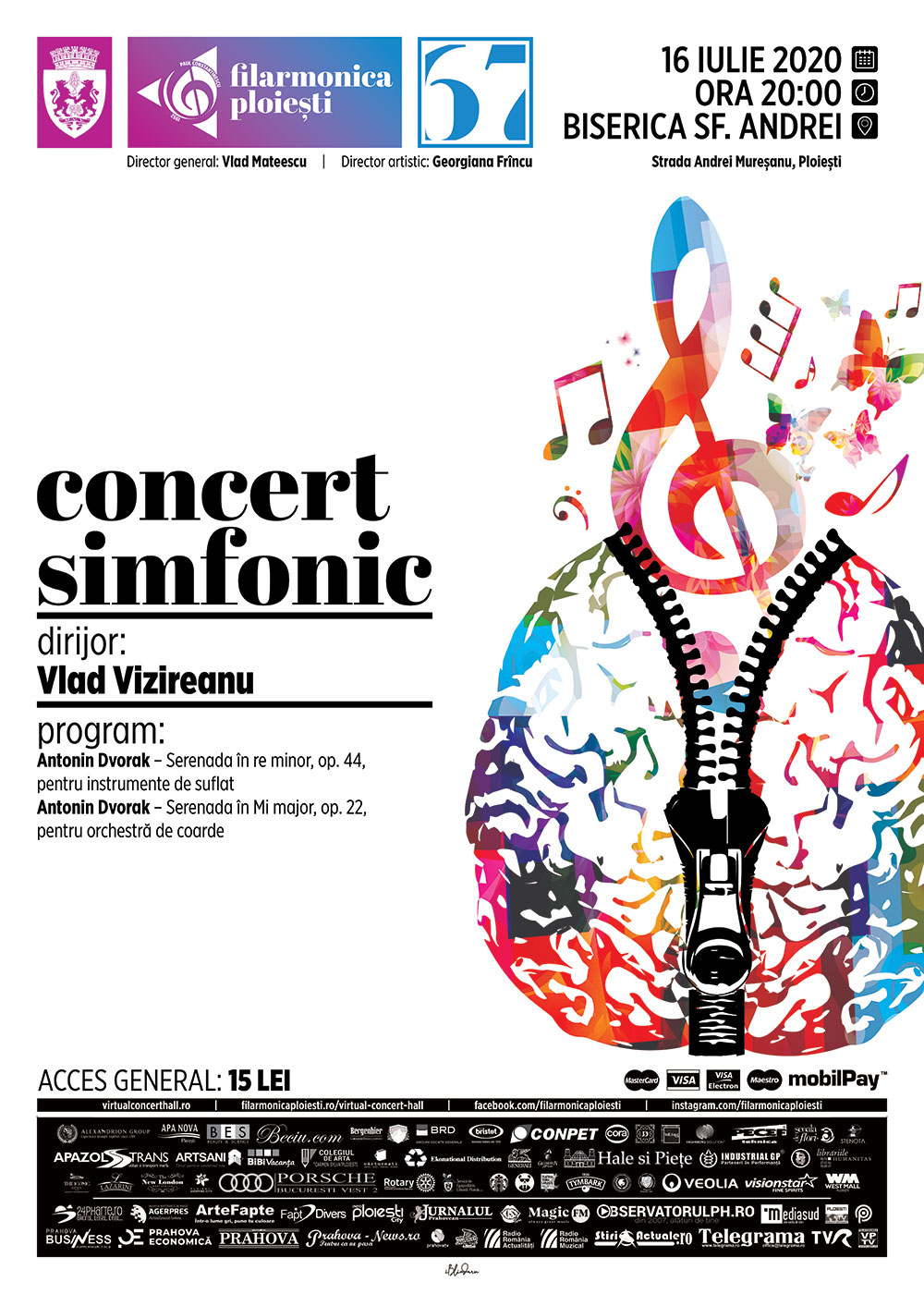 Filarmonica „Paul Constantinescu” vă invită joi, 16 iulie 2020, de la ora 20.00, la un concert al cărui program cuprinde două dintre lucrărilelui Antonin Dvorak, unul dintre cei mai cunoscuți și iubiți compozitori cehi din toate timpurile: Serenada în re minor, op. 44, pentru instrumente de suflat și Serenada în Mi major, op. 22, pentru orchestră de coarde. La pupitrul dirijoral al orchestrei simfonice se va afla Vlad Vizireanu, director muzical al Orchestrei Simfonice Knox-Galesburg, Illinois. Evenimentul se va desfășura pe esplanada Bisericii Sf. Andrei din Ploiești (str. Andrei Mureșanu, cartier Cina).