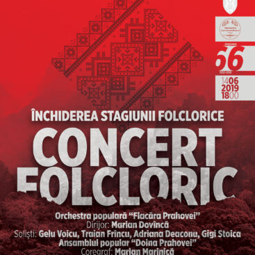 Orchestra Populară "Flacăra Prahovei", condusă de dirijorul Marian Dovîncă, încheie stagiunea 2018-2019 cu un concert care-i va aduce în fața publicului pe talentații soliști Gelu Voicu, Traian Frîncu, Adriana Deaconu și Gigi Stoica. Invitați sunt membrii Ansamblului "Doina Prahovei" – coregraf Marian Marinică. Vă așteptăm vineri, 14 iunie 2019, de la ora 18.00, în Sala "Ion Baciu" a Filarmonicii.